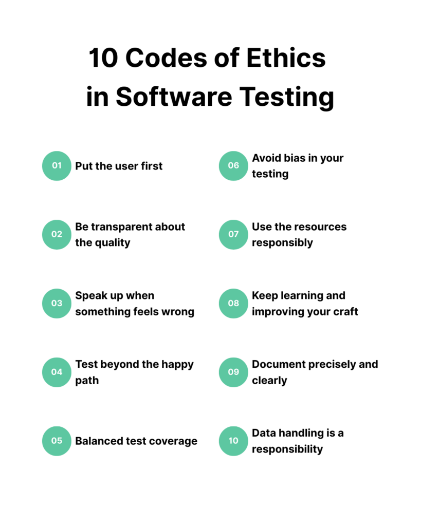 Code of Ethics turns testing from a routine task into a commitment to doing what is right for the product and the people who depend on it. When we follow ethics in software testing, it builds trust within the team as well as with the customers. Here are 10 codes of ethics in software testing based on my experience.